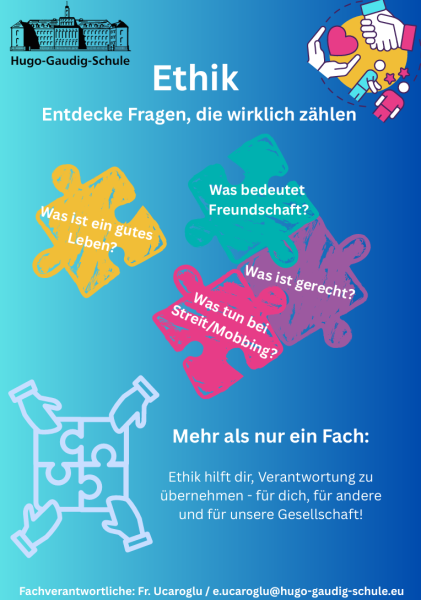 Der Ethikunterricht hat den Anspruch, Hilfestellungen bei der Beantwortung dieser Fragen zu geben und eine Orientierung zu verschaffen. Die Schülerinnen und Schüler setzen sich so mit ihren Mitmenschen, ihrer Umwelt und sich selbst auseinander.