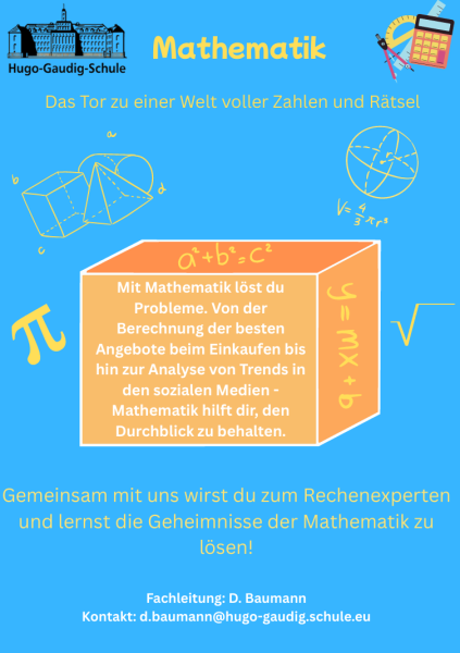Das Fach Mathematik zählt zu den Hauptfächern an unserer Schule und wird leistungsdifferenziert unterrichtet.