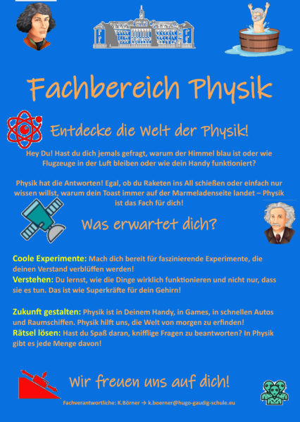 Der Physikunterricht findet in zwei Fachräumen statt. In der 7. und 8. Klasse wird Physik epochal 2-stündig (also 1x pro Woche 2 Stunden nur ein halbes Jahr) unterrichtet. In den höheren Klassen läuft er zweistündig das ganze Jahr durch.
