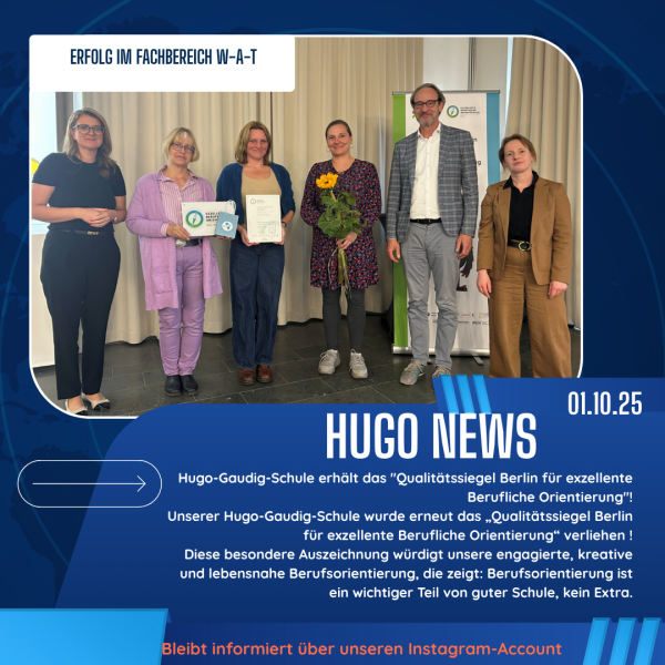 Wir sind auch auf Instagram zu finden. Folgt uns unter #hugogaudigschule